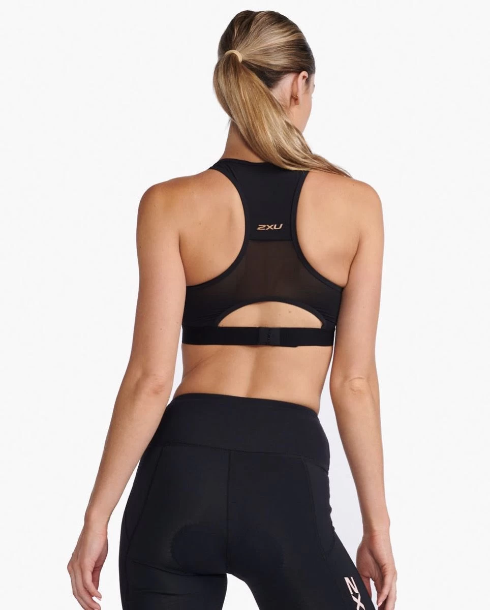 Total Comfort: Lightweight and flexible underband elastic with racerback design allows full range of motion whilst strategic power mesh panelling at front increases airflow.