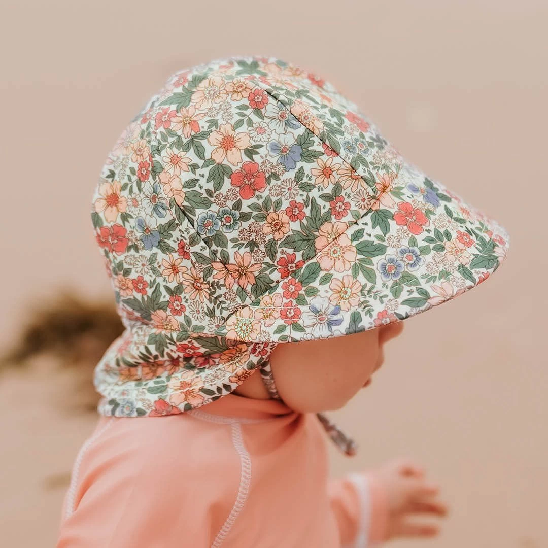 Not your usual girlishly-pink flower, this beautiful so-now colour combo of peach, blue and olive greens is a firm favourite and predicted best-seller! Pairs perfectly with our Peach or Slate Rash Vests. Available in Legionnaire, Ponytail Bucket and Wet Bag.