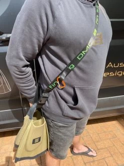 Carry your fins and extra bits on your DMC fin sling to and from your workout and be hands-free.
