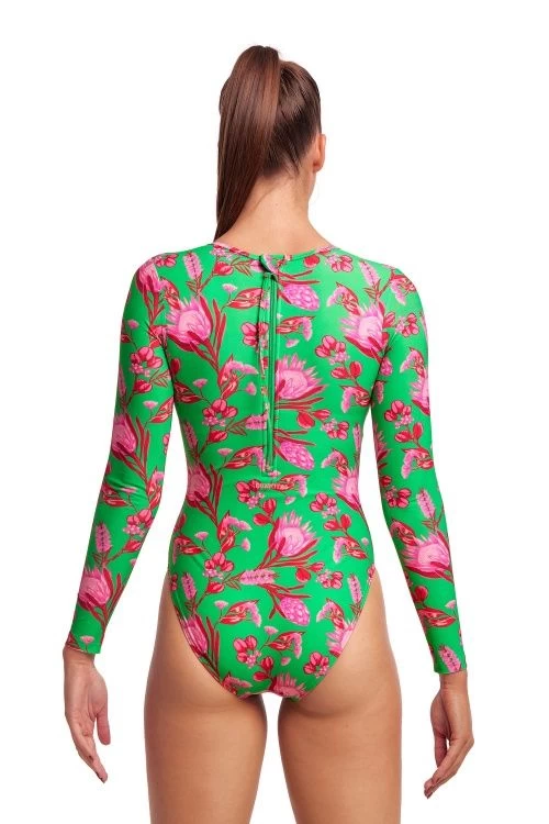 My back zip fastening with a fabric cord attached helps you zip in and out of me with ease. My compressive powermesh lining around your body offers extra support and creates a strong silhouette. I’ve got a high leg height. I’m made with all the care and love that makes me proud to be Funkita. Made from our exclusive C-Infinity fabric, a 100% Italian polyester that is a colourful breakthrough in chlorine resistant fabric technology! The superior choice for swimmers, C-Infinity has exceptional strength and can retain its durability far beyond other elastane swimwear. Ideal for frequent pool use for recreational and performance-based swimming.