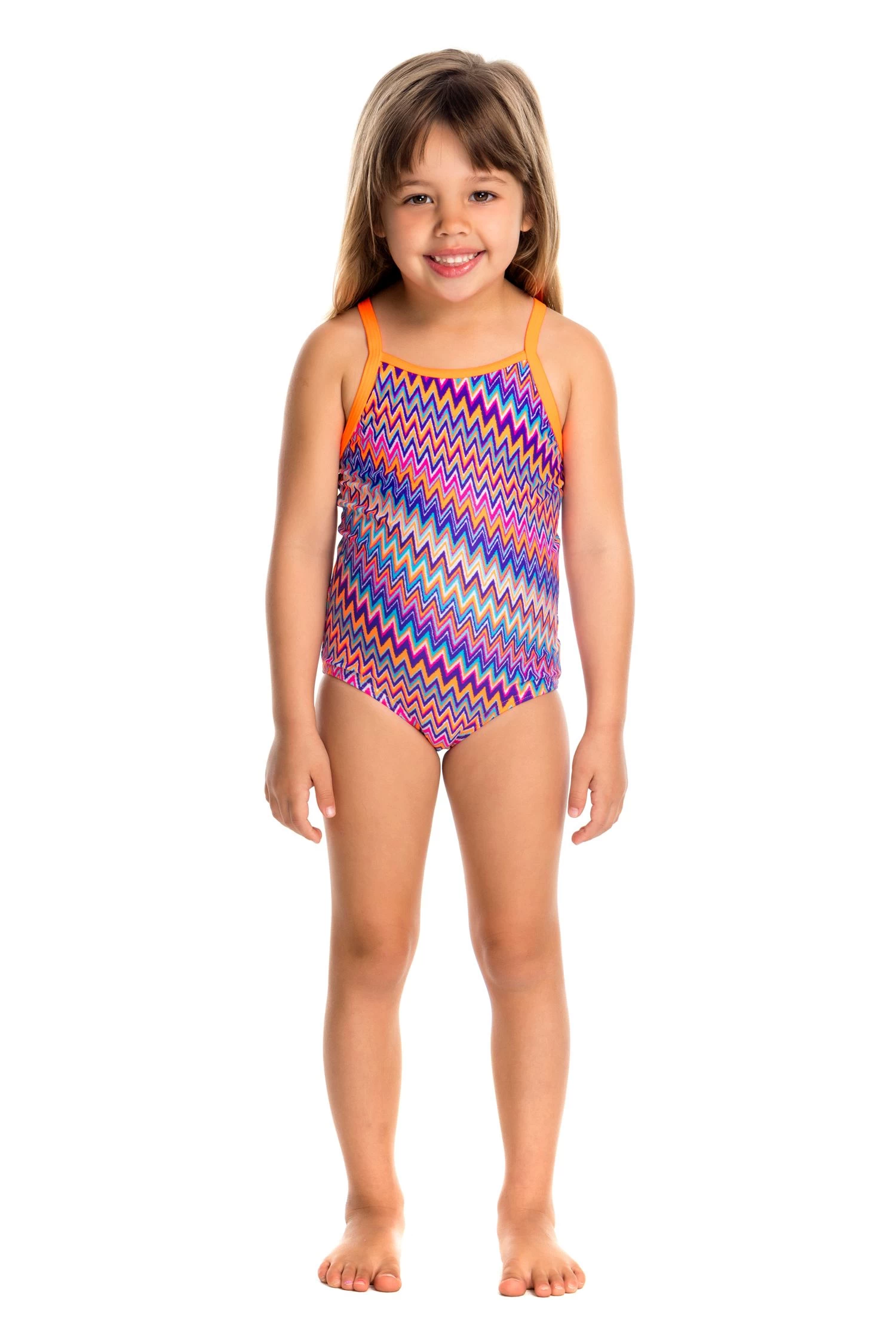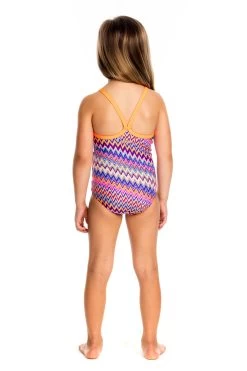 With full back coverage and a racer strap finish, this simple style is easy to put on and take off. Features a low leg, single strap bind with Funkita embroidered logo and full front lining. Available in sizes 1 – 6.Â