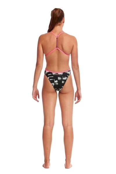 Featuring single bind straps that converge into a twist at the back this high leg one piece features full front lining, cut away sides and minimal back coverage to give you plenty of freedom of movement when you’re training your hardest. Available in sizes 6 – 12.
