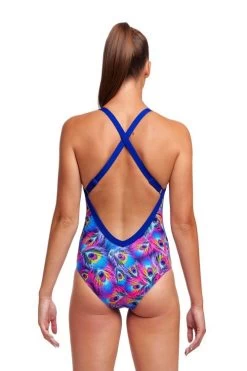 - I’ve got a high neck to give you a full front coverage and an open teardrop-shaped back cutout to keep you free and fabulous from behind.