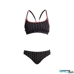 Firm fitting sports crop top with racer back and double strap bind finish with wide elastic for under bust support to give you the support you need in a sports top. Sold as separates and available in sizes 8 – 14.