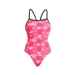 Single strap one piece with strappy V shaped back. Excellent durability and freedom of movement with single bind finish and an open back that will flatter your sporty shape. With full front lining, this is the perfect style for those long hours of training in the pool. Available in sizes 6 – 16.