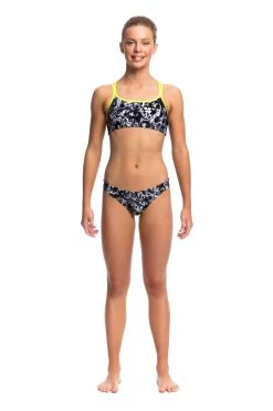 A double strap crossover back that provides added comfort and support for hours in the pool. Pairs back with the new skinny brief which provides firm rear coverage with drawcord.