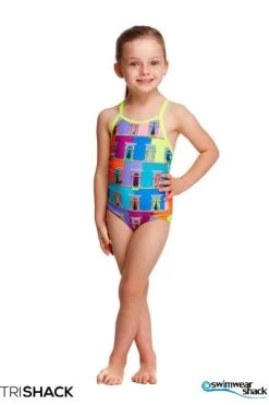 With full back coverage and a racer strap finish, this simple style is easy to put on and take off. Features a low leg, single strap bind with Funkita embroidered logo and full front lining. Available in sizes 1 – 7.