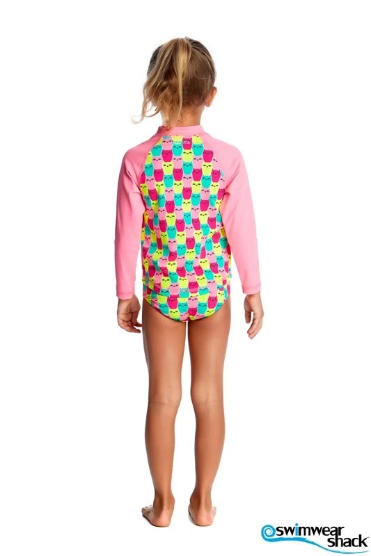 Long sleeve sunsuit with mid-length front zip and comfortable fit makes this the perfect outfit for your watery adventures. Constructed with our long lasting, chlorine resistant, UV50+ protection fabric it will keep you protected from the sun throughout the day. Available in sizes 1-7.