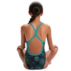 Take the sting out of tough sets wearing our stylish ‘Jellyfish Glows’ Vback swimsuit, which features a glowing jellyfish digital print against a navy blue backdrop. A go-to for junior training, the simple Vback design with modest cut is comfortable to train in and provides maximum freedom of movement. Fully front lined in Miami lilac for comfort and modesty. Made from our ECO Endurance+ fabric, which is 100% chlorine resistant, quick-drying and made using 50% recycled materials.