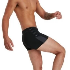 Upgrade your swim with iconic Speedo branding. Feel inspired in the pool wearing this sleek black Aquashort, featuring a vertical repeat pattern of our iconic Speedo Boom. A drawstring waist ensures a great fit during your swim, while our quick-drying, 100% chlorine-resistant Endurance+ fabric is ideal for everyday fitness training.