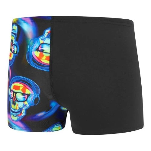 Bring a burst of neon colour with our small scale all over repeat DJ Skull striking Aqua short. Ideal for regular pool sessions, our ECO Endurance + fabric offers 100 % chlorine resistance. Yarns in the fabric are made from 100% recycled waste fabric, so it’s better for the environment too.