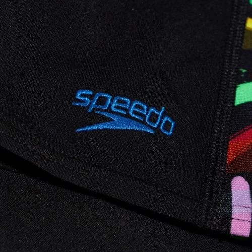 Splash, dive and train in this sleek black Jammer, featuring eye-catching side panels of our brightly coloured ‘brushstrokes’ print. Lined at the front for comfort and modesty, this junior jammer includes an internal drawcord to allow young swimmers to adjust the fit. Designed to be durable and better for the environment, it’s made from our new ECO Endurance+ fabric, which is 100% chlorine resistant, quick-drying and developed using 50% recycled materials.