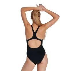 Streamlined, tech-inspired aesthetics. Fly through your fitness training wearing our graduated colour Medalist swimsuit featuring curved graphic lines and texture-effect panelling. A Speedo favourite, our popular medalist style includes a medium neck and leg, plus a modest back for great shoulder movement and comfort during training. Light bust support via a comfy underband helps you feel secure and supported. Designed to be durable and better for the environment, the suit features our durable new ECO Endurance+ fabric which is 100% chlorine resistant, quick-drying and made from 50% recycled materials.