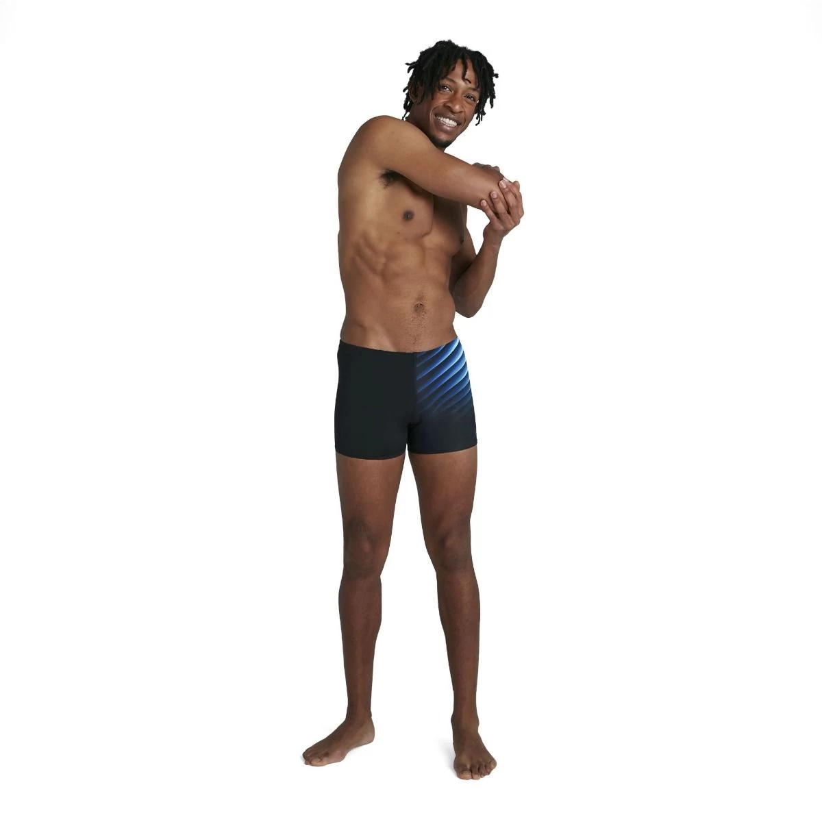 Stylish fitness training aquashort with a graduated chevron print down the leg. Made from Speedo’s quick-drying, 100% chlorine-resistant Endurance+ fabric for outstanding durability, no matter how often you swim. A drawstring waist and integral support provides comfort and security, ideal for everyday swim fitness training.