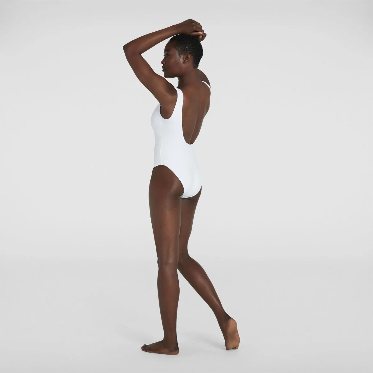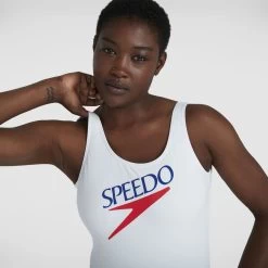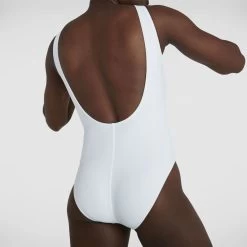 Make a style statement with the Speedo Legacy collection. This striking white U-back swimsuit looks stunning and features the classic Speedo logo for a simple but bold look. Comfy whether you’re lounging or lane swimming, the swimsuit features a scoop neck, deep U-back and medium leg for an on-trend fit. Made from Speedo’s soft and stretchy new Speedo Eco EnduraFlex – all the shape-retaining benefits of their Endurance10 fabric, but made from recycled yarns.