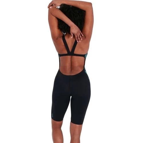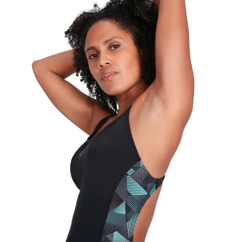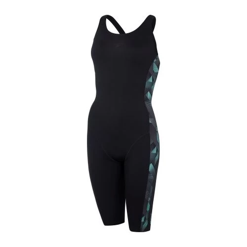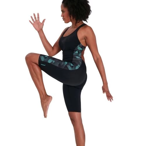 Stylish performance swimwear. With its knee-length coverage and open back, the Leaderback Kneesuit allows you to breeze through your workout without feeling held back. The vivid blue and grey geometric panel design adds a burst of colour against the streamlined kneesuit and includes fine sharkskin details, while a bust shelf liner provides light support. Designed to be durable and better for the environment, the kneesuit features our new ECO Endurance+ fabric, which is 100% chlorine resistant, quick-drying and made from 50% recycled materials.