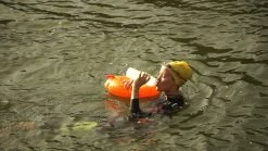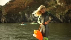 A highly visible tow float with waist strap and an open top slot for bottles up to 750ml. The floor of the float inflates, with a drain hole, so that any water going into the float self drains. Ideal for swimmers that want to put in a long training swim but stay hydrated while in the water. Recommended for all open water swimmers that want a high visibility tow float and have increased visibility out on the water.