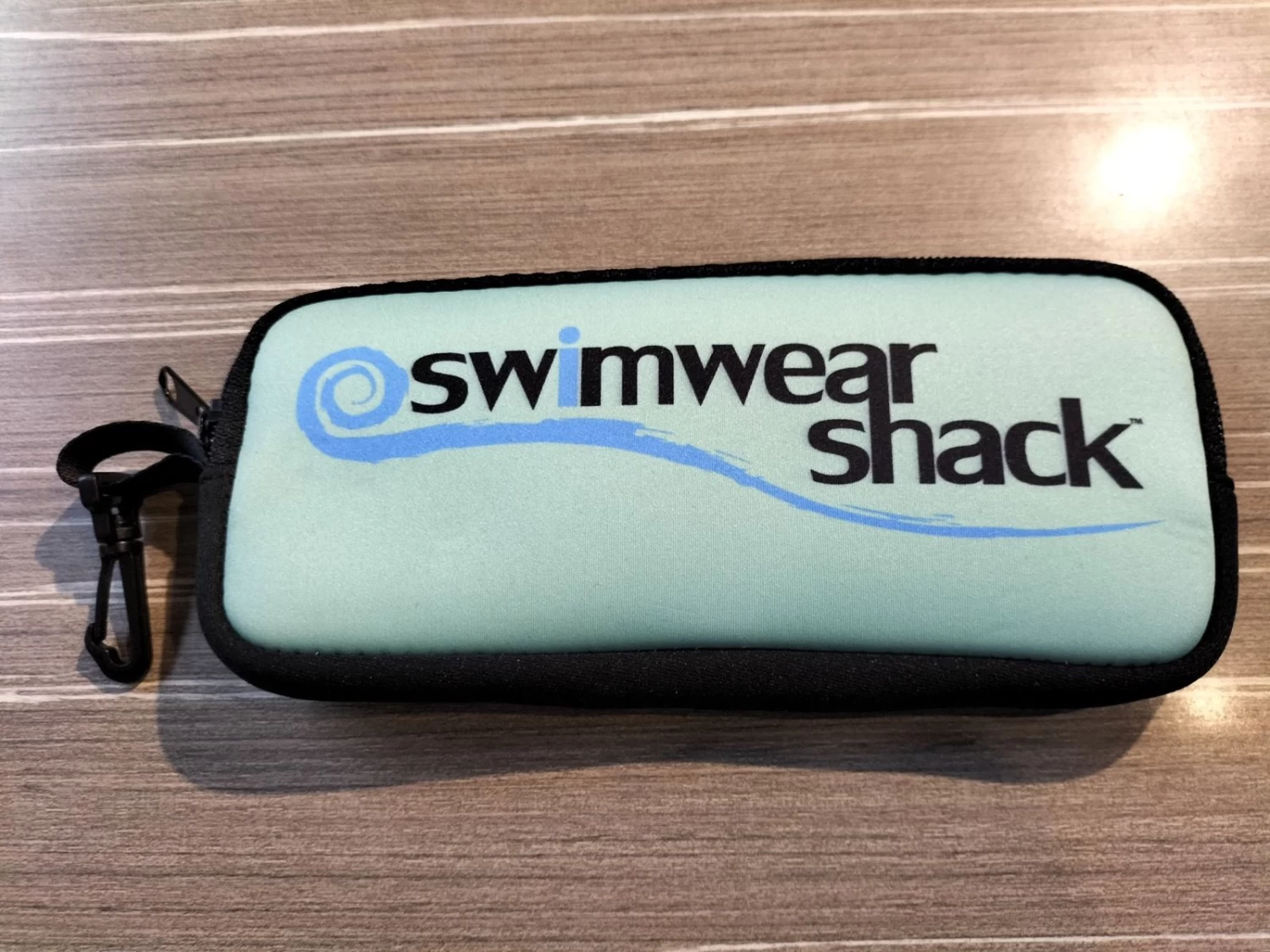 Swimwear Shack Neoprene Cases – great for storing your wet swim goggles, swim caps and swimsuits or use them as a pencil case. Features include a hook for attaching to your swim bag.