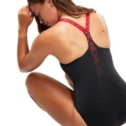 This sleek, tech-inspired Performance swimsuit is packed with technical innovations to help take your training to the next level. Striking in black with a graduated red plastisol print design and high cut leg, the suit includes smooth-fit comfort straps and a highly supportive 360 Powermesh bra liner for comfort during tough workouts. A specially placed performance seam enhances the suit’s streamlined shape, while anti-microbial technology ensures it stays fresh swim after swim. Designed to be durable and better for the environment, it’s made from our new ECO Endurance+ Pro fabric, which is 100% chlorine resistant, quick-drying, made from 50% recycled materials and has the added benefit of being finished with a water repellent and anti-microbial treatment.