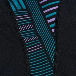 Stylish performance swimwear. Power through your workout wearing our flattering black Laneback swimsuit with contrasting turquoise straps and a subtle plastisol curve detail in lilac. The medium cut leg and bust underband ensure you feel comfortable and supported during your fitness training. Designed to be durable and better for the environment, the suit features our new ECO Endurance+ MAX fabric, which is 100% chlorine resistant, quick-drying and made from 100% recycled post-consumer waste.