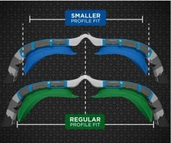 - Blue/Black with photochromatic lens Available in Regular & Small Profile Fit – scan your face to find your fit Reacts to suns rays for a darker tint in bright conditionsÂ