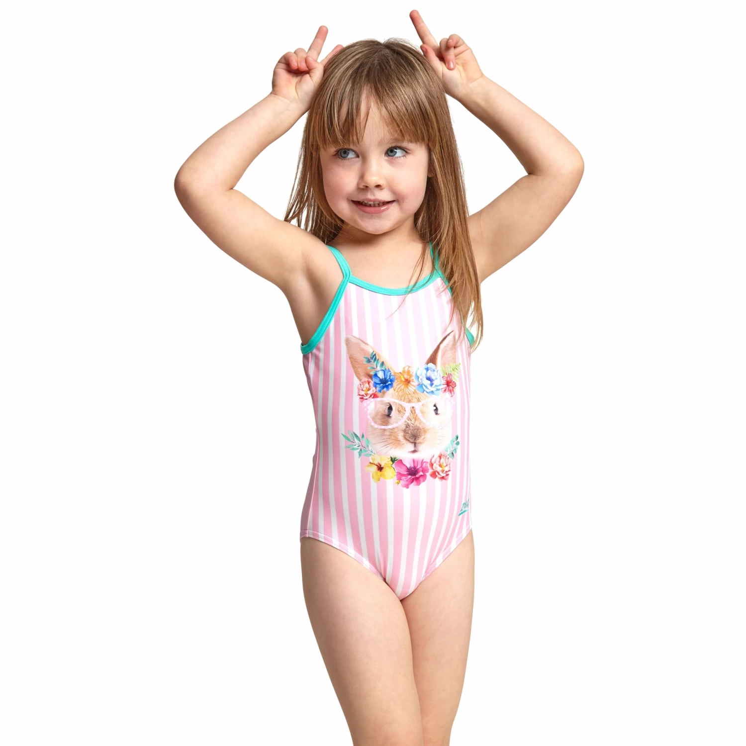 Hop into Zoggs’ Tropical Bunny One Piece, an absolute must have for any little girl this Spring. With pink candy stripes and character Bunny print, this swimsuit is one of our favourites.